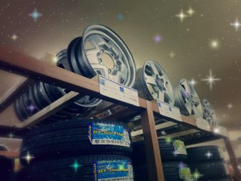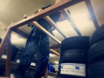 ホイール置く場所無くてタイヤ置くラックに