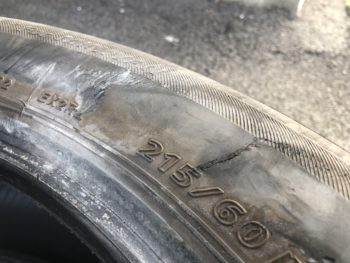 タイヤのサイドが切れてしまうと修復不可となりますので、タイヤの交換が必要となります。