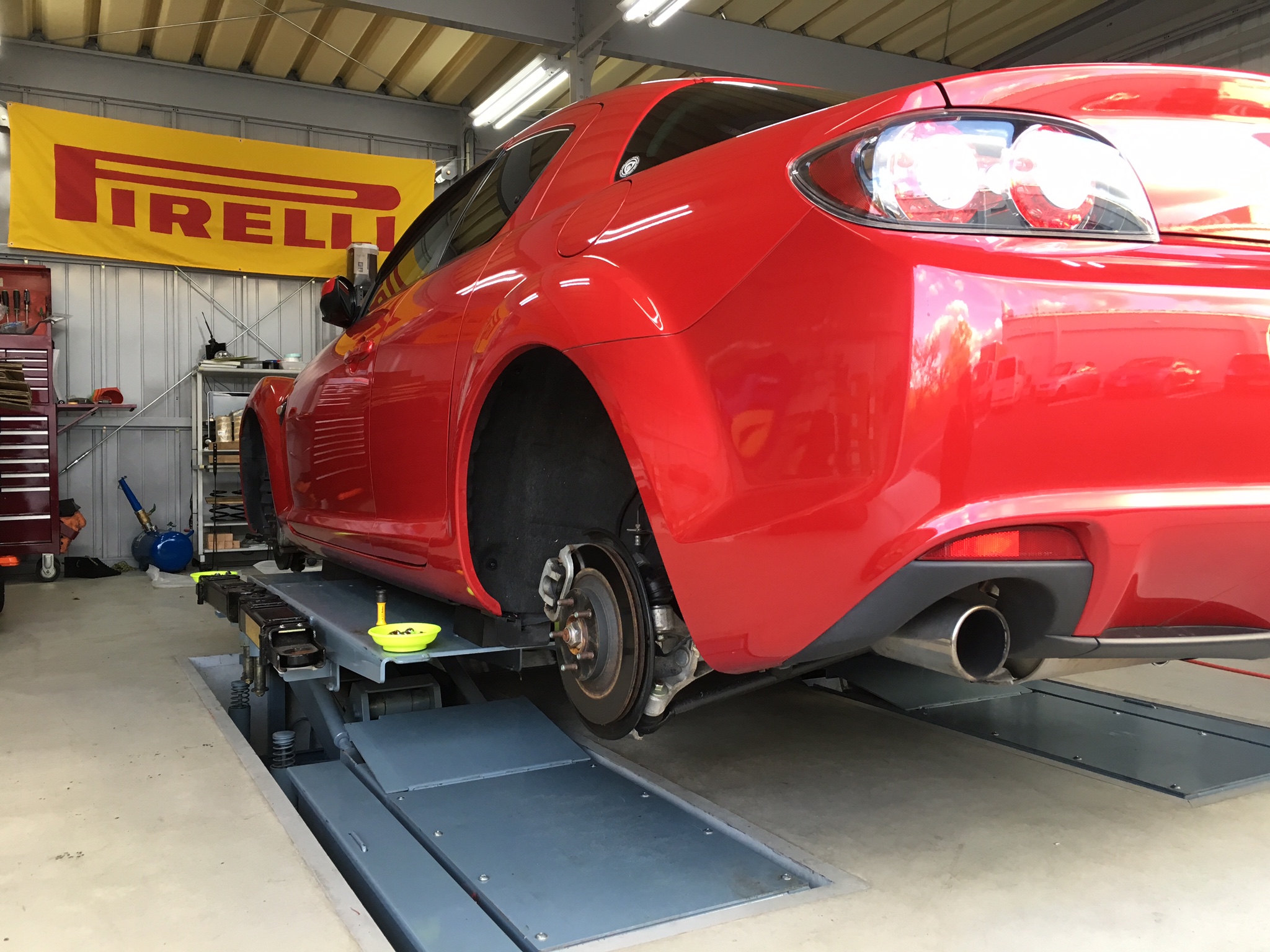 さて本日はマツダのRX-8夏冬入替作業をしましたー